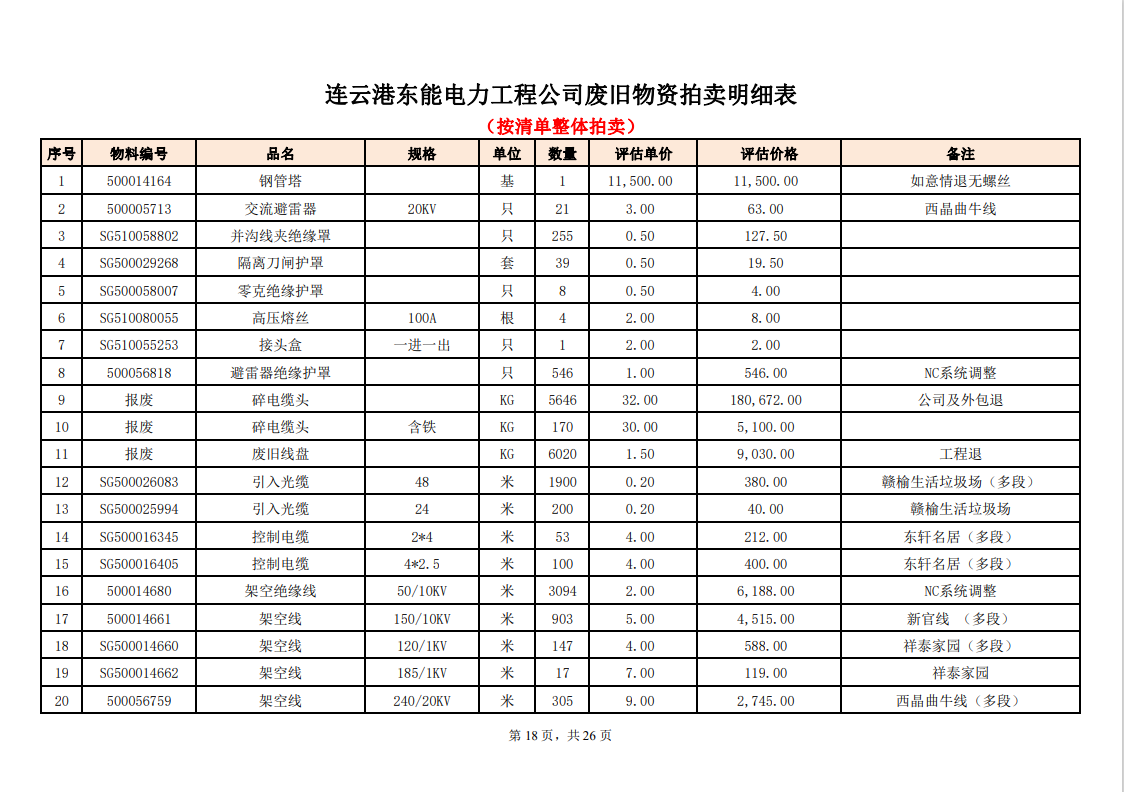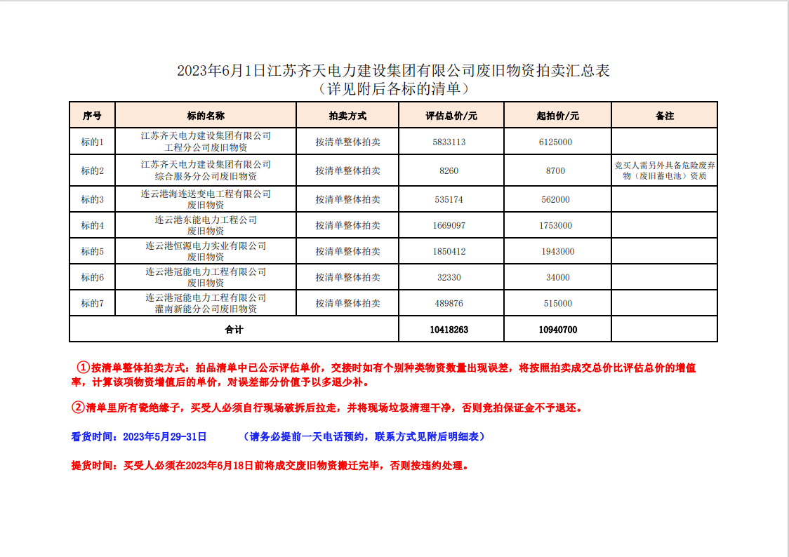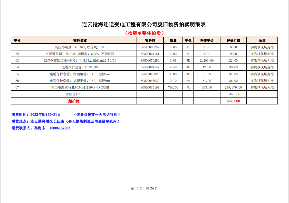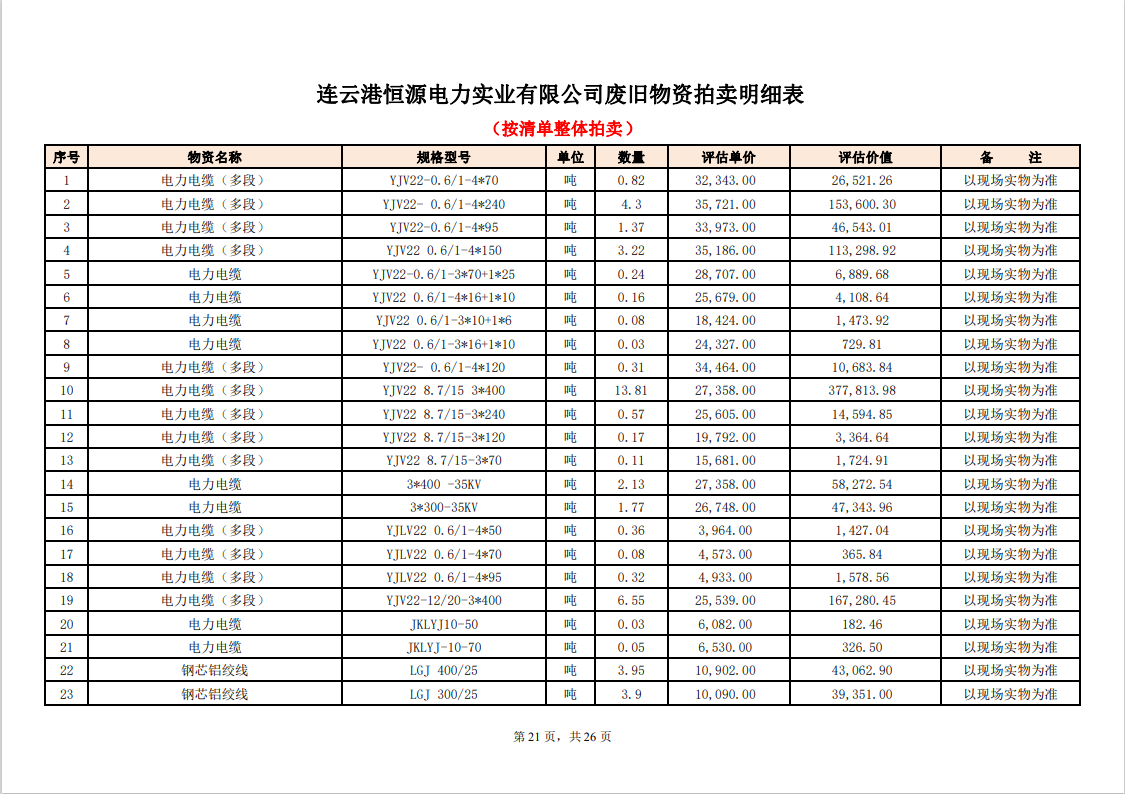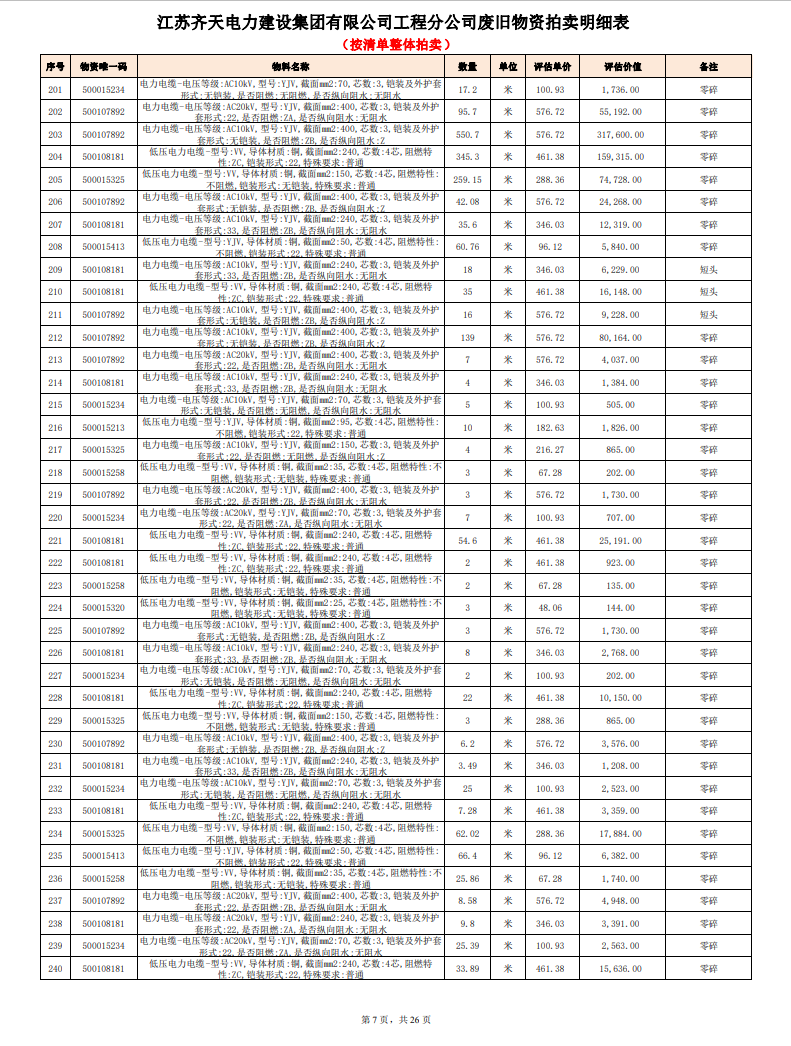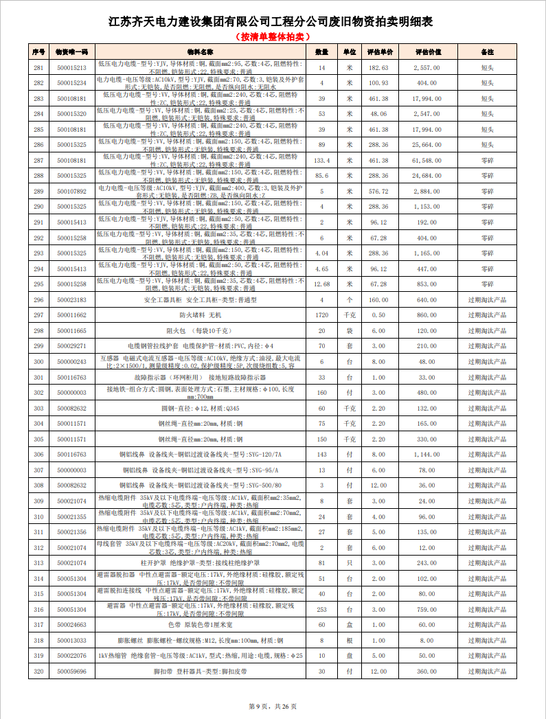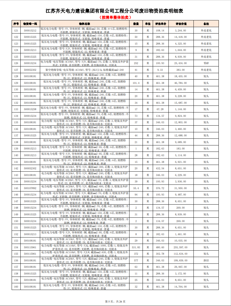 關(guān)注微信公眾號(hào)定于2023年6月1日上午9:30時(shí)(網(wǎng)絡(luò)延時(shí)除外)在中拍平臺(tái)公開(kāi)拍賣廢舊電力物資一批。主要包含:銅芯電纜、鋁芯電纜、鋼芯鋁絞線、廢舊鋼材、變壓器、電力設(shè)備、辦公設(shè)備、雜項(xiàng)物資、蓄電池等。