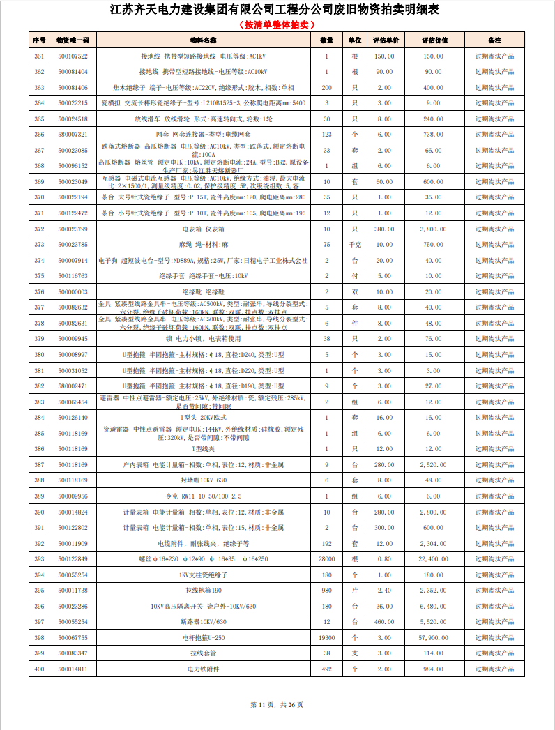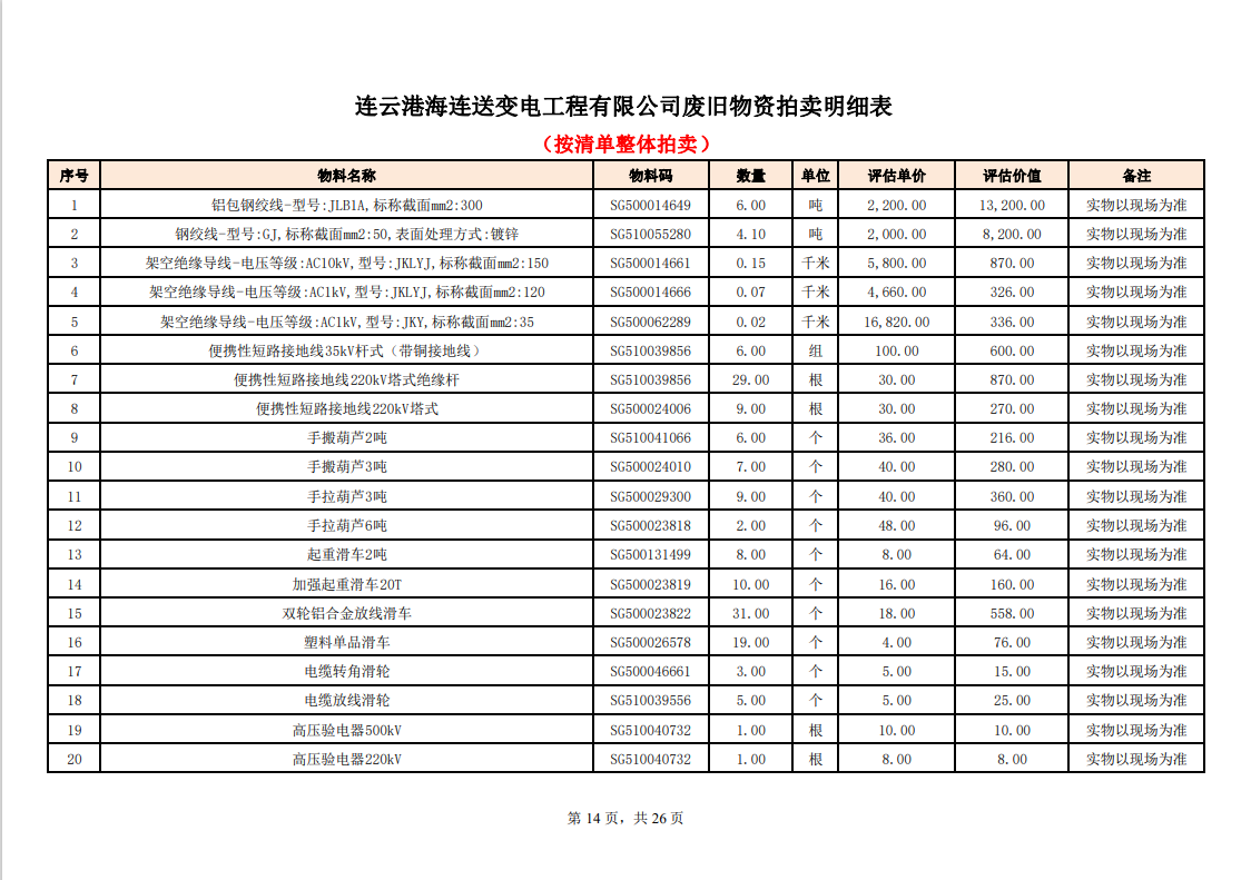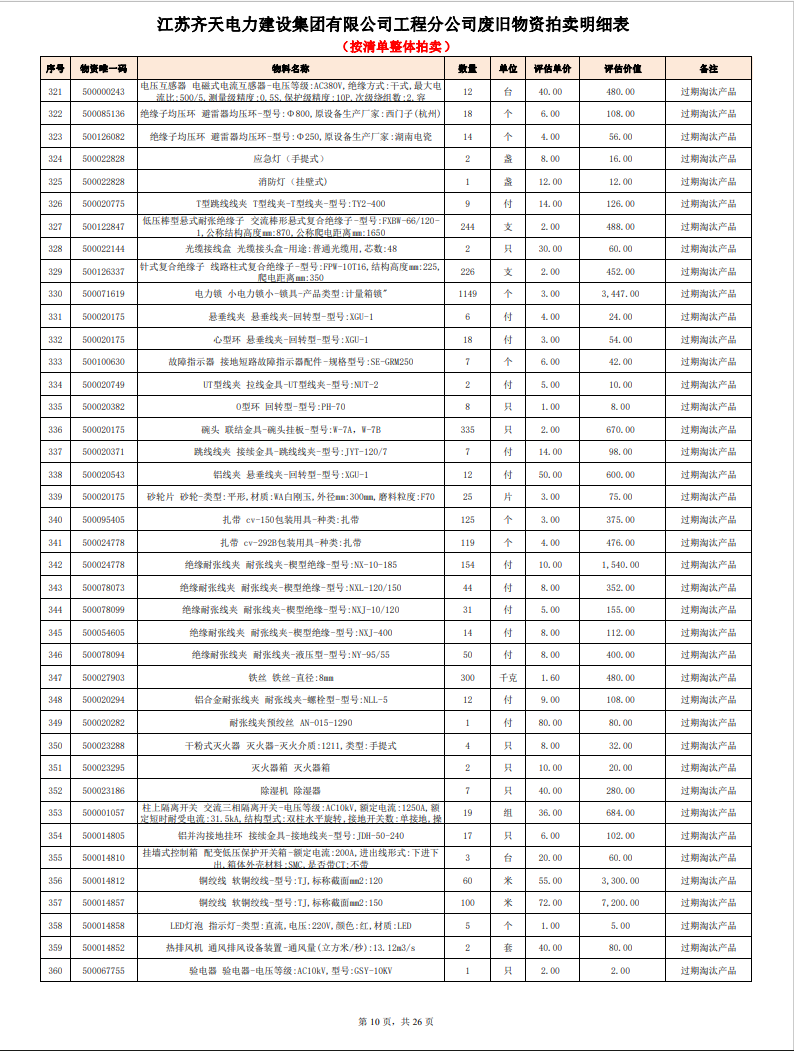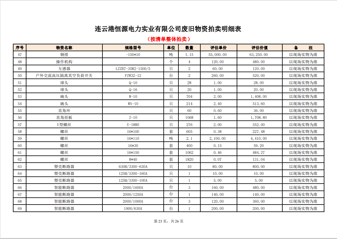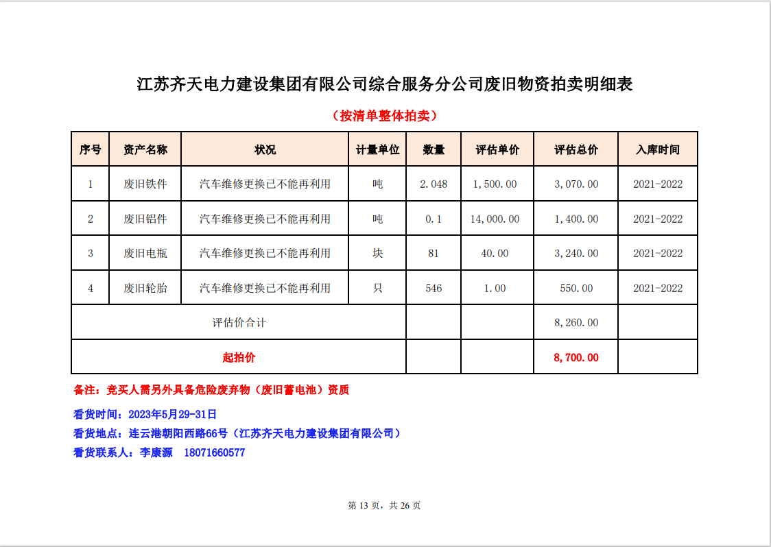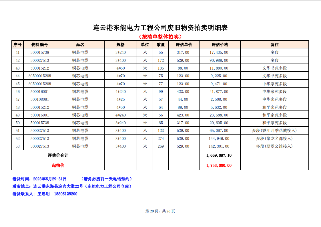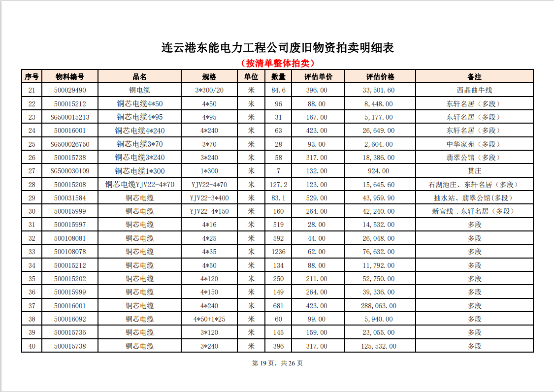 關(guān)注微信公眾號(hào)定于2023年6月1日上午9:30時(shí)(網(wǎng)絡(luò)延時(shí)除外)在中拍平臺(tái)公開(kāi)拍賣廢舊電力物資一批。主要包含:銅芯電纜、鋁芯電纜、鋼芯鋁絞線、廢舊鋼材、變壓器、電力設(shè)備、辦公設(shè)備、雜項(xiàng)物資、蓄電池等。