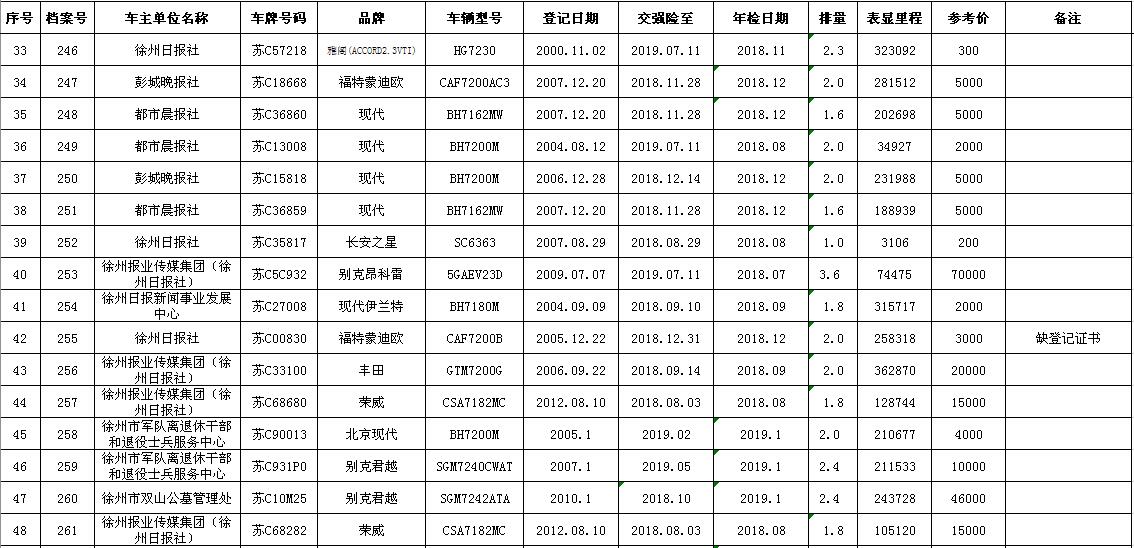 一、拍賣標(biāo)的:徐州市企事業(yè)單位改革公務(wù)車輛(詳見每期拍品目錄)。