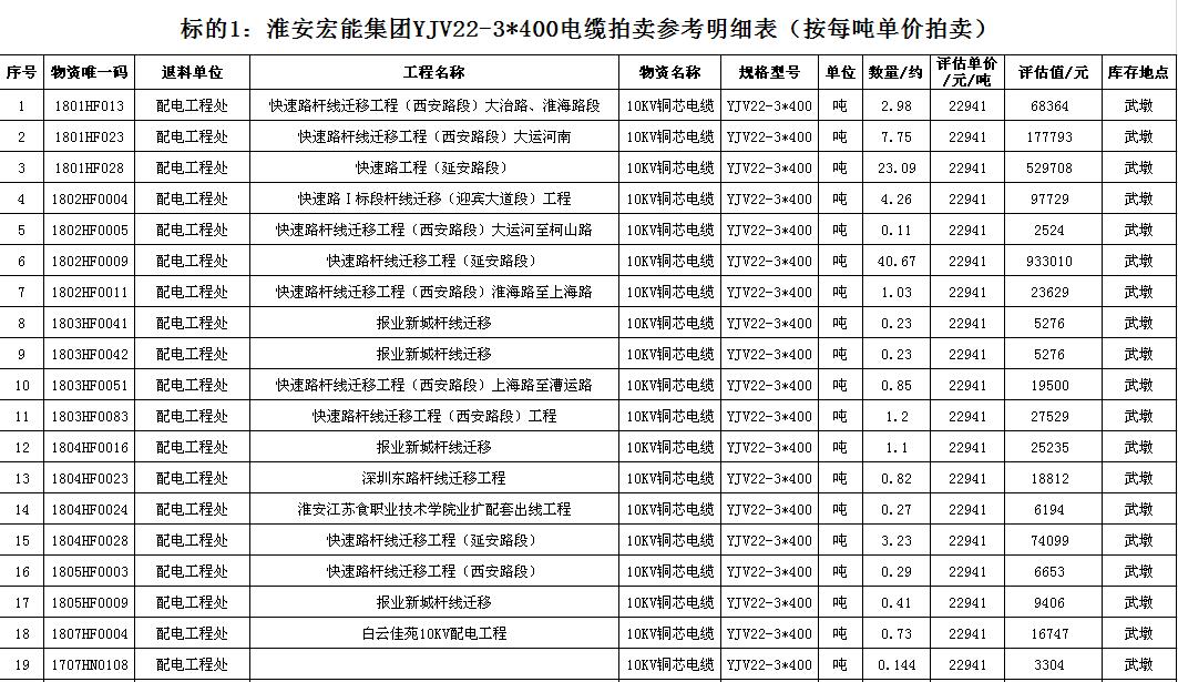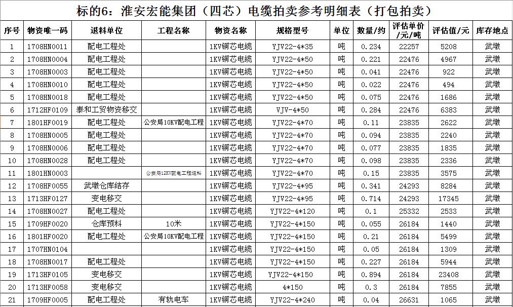 關(guān)注微信公眾號(hào)受淮安宏能集團(tuán)有限公司委托,我公司將通過中國(guó)拍賣行業(yè)協(xié)會(huì)網(wǎng)絡(luò)拍賣平臺(tái)以網(wǎng)絡(luò)競(jìng)價(jià)的方式公開拍賣廢舊物資一批,主要包括:各型電纜,計(jì)算機(jī)、打印機(jī)等辦公用品(詳見拍品目錄)。