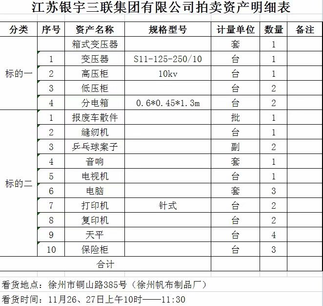 2、銀宇三聯(lián)集團(tuán)廢舊物資一批,主要包含:變壓器、高低壓柜、報廢車散件、電腦、辦公設(shè)備等。