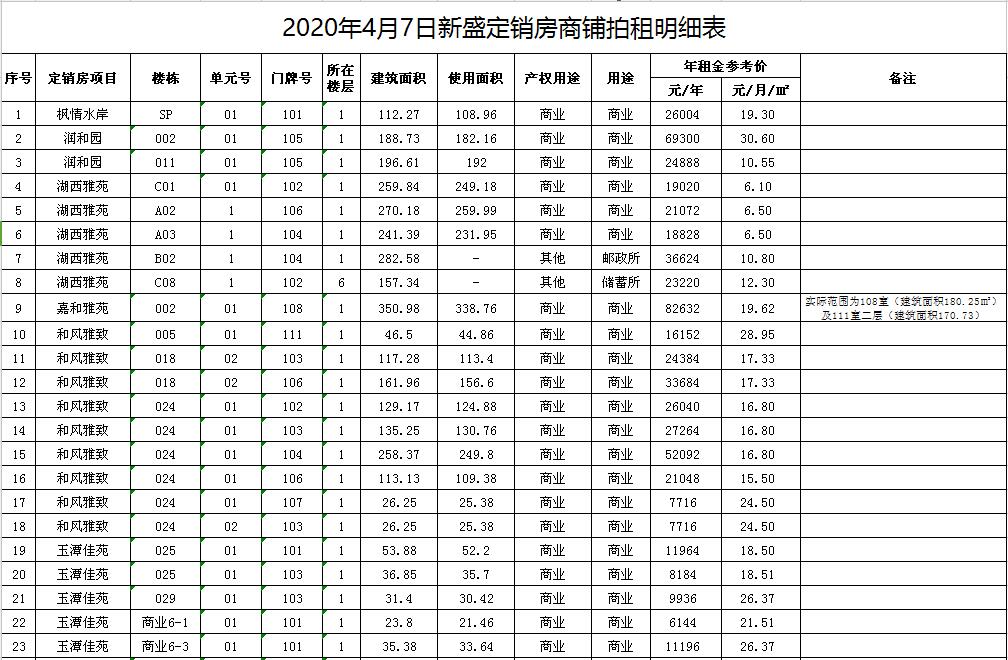 關(guān)注微信公眾號(hào)我公司受委托,定于2020年4月7日10時(shí)在中山南路55號(hào)三樓本公司拍賣廳對(duì)以下小區(qū)商鋪公開拍租: