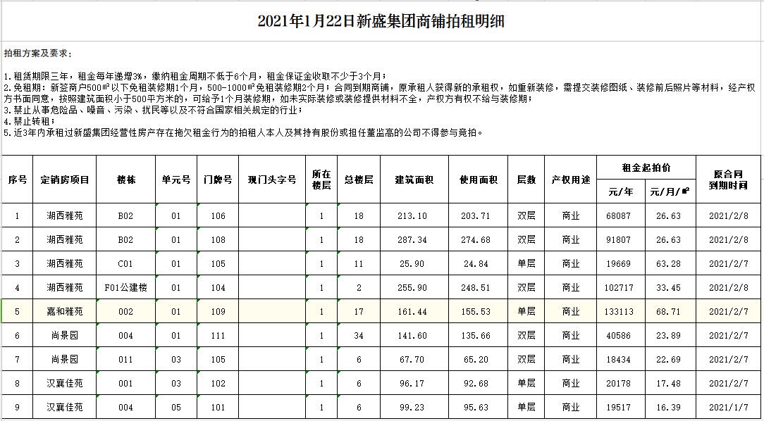 原則上原承租人享有同等價(jià)格的優(yōu)先權(quán)。近3年內(nèi)曾經(jīng)違約的競買人,承租過新盛集團(tuán)經(jīng)營性房產(chǎn),存在拖欠租金及轉(zhuǎn)租行為的承租人及其持有股份或擔(dān)任董監(jiān)高的公司不得參與競拍。