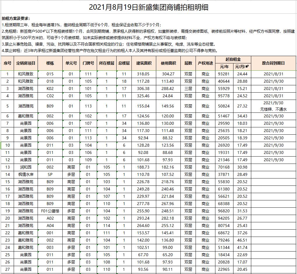 關(guān)注微信公眾號(hào)我公司受委托,定于2021年8月19日10時(shí)在徐州市中山南路55號(hào)本公司拍賣(mài)廳公開(kāi)拍租以下商鋪:湖西雅苑10間、嘉和雅苑4間、尚景園13間、玉潭佳苑3間、康馨園3間、楓情水岸1間、潤(rùn)和園1間、天瑞華府1間、和風(fēng)雅致2間。面積分別約為數(shù)十至三百余平米不等,租期均為三年。