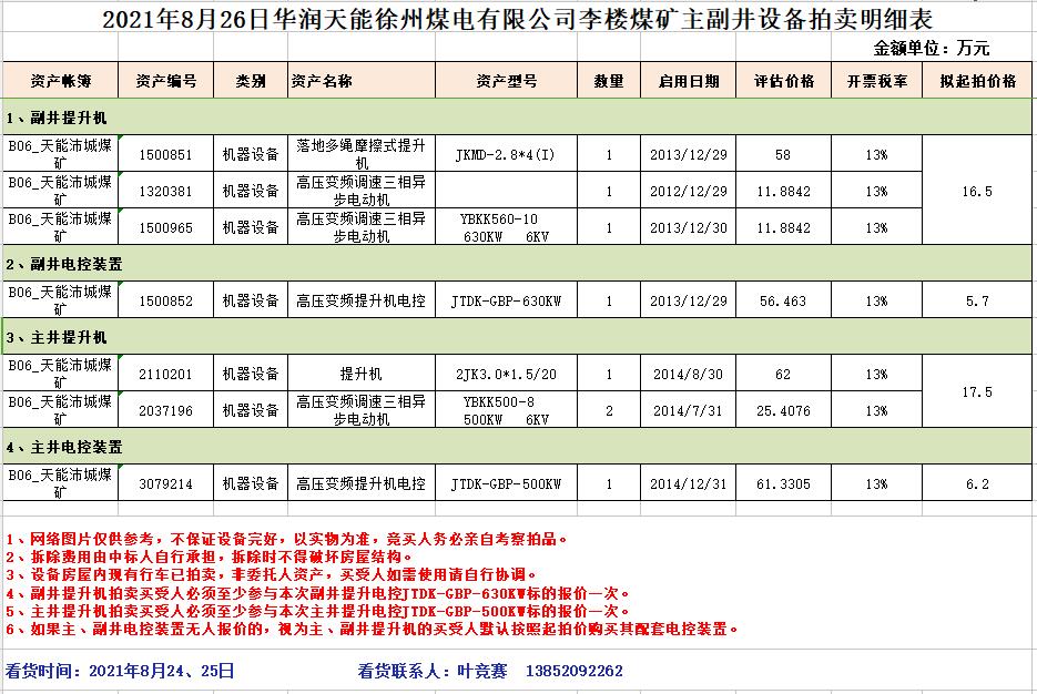 2、華潤(rùn)天能公司李樓煤礦主副井提升機(jī)及電控裝置。(保證金5萬(wàn)元)
