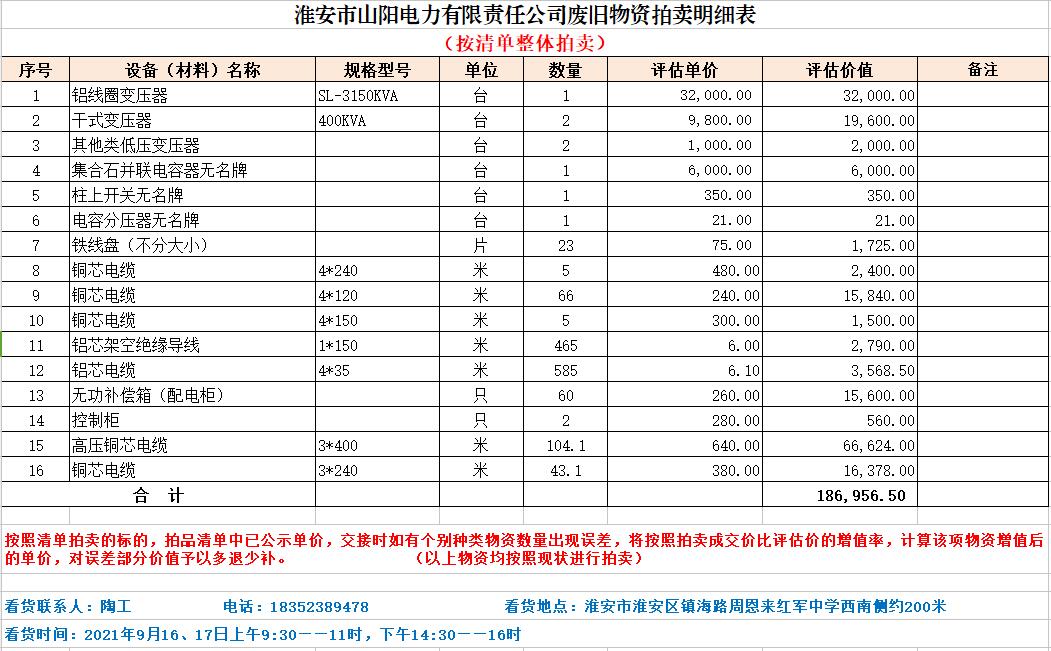 關(guān)注微信公眾號(hào)受委托,我公司定于2021年9月18日10時(shí)(網(wǎng)絡(luò)延時(shí)除外)在中拍平臺(tái)以網(wǎng)絡(luò)競拍的方式公開拍賣以下單位電力物資,主要包含:變壓器、開關(guān)柜、配電柜、控制柜及電纜等物資。